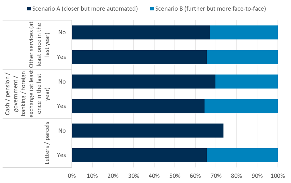 There is a need to consider what a minimum requirement for a Post Office would be in rural areas. Consumer Scotland research (outlined in our response) suggests consumers would prioritise access to cash, banking, postal services, and bill payments closer to their location. In some cases, more expanded parcel services (beyond PUDO) may be required to ensure adequate provision. Our research also suggests consumer preferences for more local services provided in a more automated way. Respondents’ answers suggest that this would be particularly beneficial for postal services and banking services.