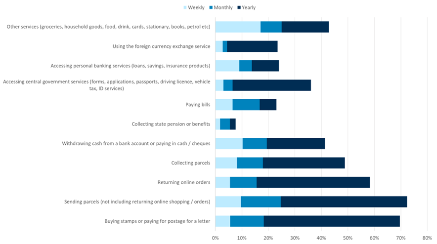 From our survey data, it is clear consumers in Scotland who have used the Post Office for critical services in the last year often use these services frequently – on a weekly or monthly basis. This suggests that there are a significant number of consumers who are reliant on accessing these services and who do so often. To ensure these consumers continue to have access to these essential services, this offering must be part of core Post Office operations going forward.