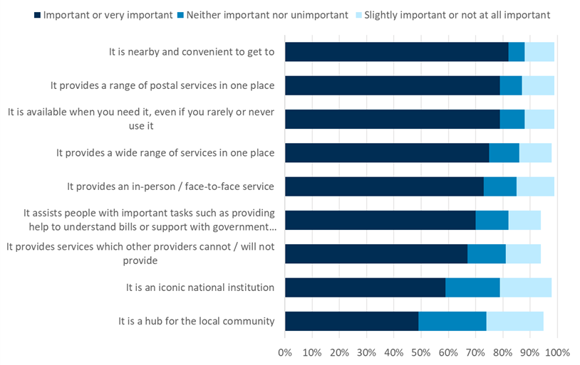 82% of respondents stated that it was important or very important that the Post Office was nearby and convenient.